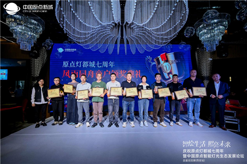 晚宴现场,对七年间与原点灯都城一路同行的商户们进行了表彰,感恩他们与原点灯都城的七周年风雨同舟,感谢他们一路以来对智能照明的积极创新。