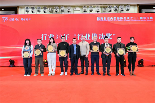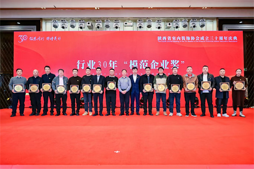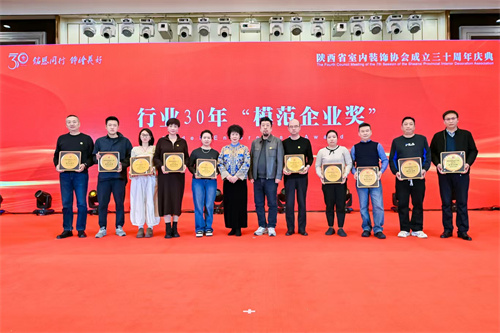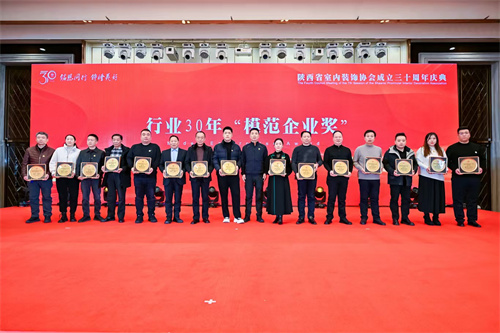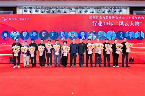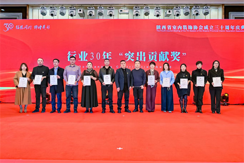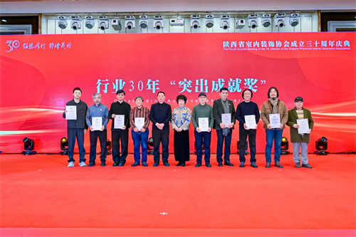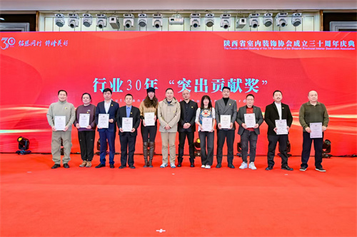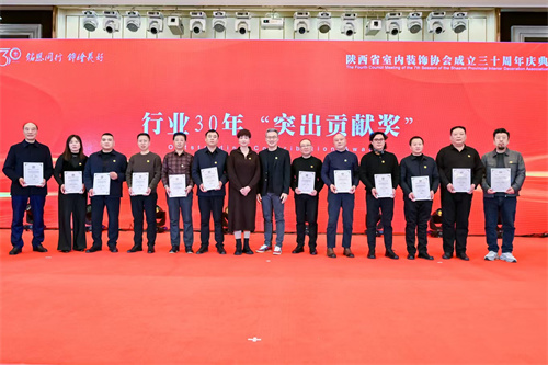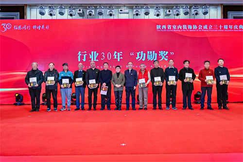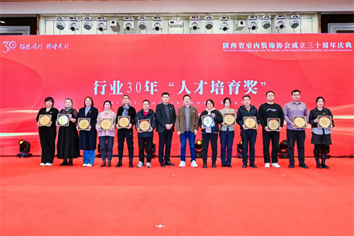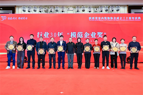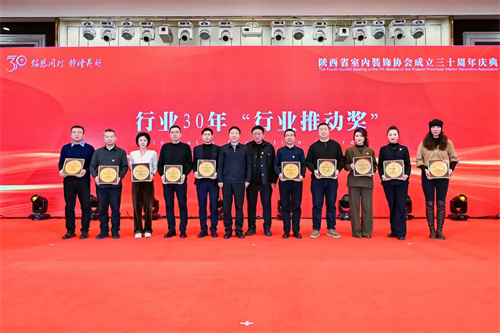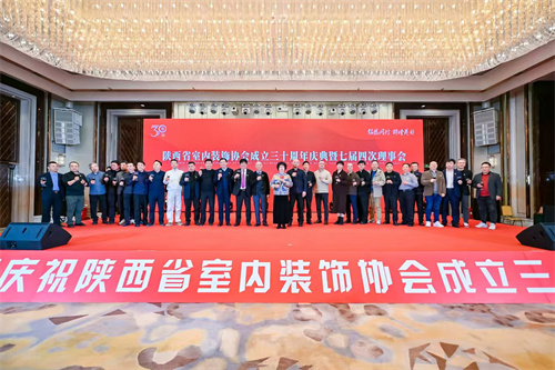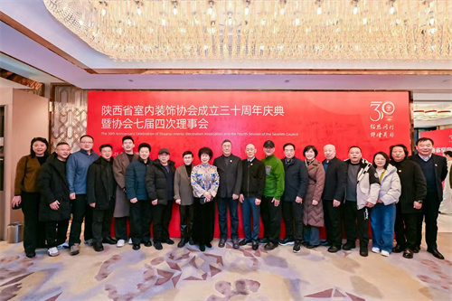 1月21日,陕西省室内装饰协会成立三十周年庆典暨七届四次理事会在西安索菲特人民大厦举行。陕西省第十届人大常委会副主任邓理,中国室内装饰协会名誉会长、行业发展战略委员会主任刘珝,中国室内装饰协会会长张丽、副秘书长宋昕,陕西经济联合会副会长王奋利、经贸合作部部长李茹,以及来自福建、湖南、江西、贵州、上海、云南、宁夏、呼和浩特、山西、江苏、河南、温州、大连等省市兄弟协会的会长、秘书长等亲临现场,与协会领导,行业专家,各地市协会、相关院系领导,协会理事、会员代表,行业精英及媒体代表等400余人齐聚一堂,共襄盛举。本次活动以“铭恩同行 饰绘美好”为主题,通过“光辉岁月”、“高光时刻”、“铭恩同行”三大篇章,回顾了协会三十载发展历程,隆重表彰了为推动行业发展做出卓越贡献的个人与单位。