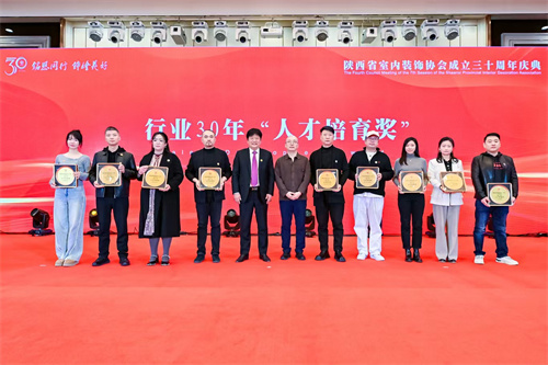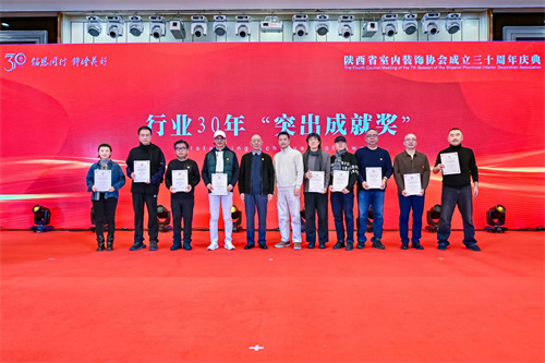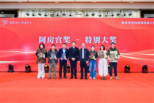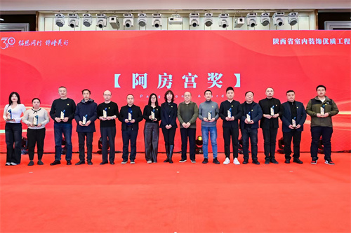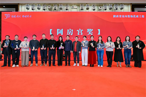 在隆重的颁奖仪式中,对在“庆祝陕西省室内装饰协会成立30周年评选表彰活动”中推出的15位三十年“行业风云人物”,评选出的21位“功勋奖”、34位“突出成就奖”、36位“突出贡献奖”、75家“模范企业奖”、26位“人才培育奖”、21位“行业推动奖”的个人和单位,对获得2024-2025年度陕西省室内装饰优质工程“阿房宫奖”项目的单位颁发了奖牌(杯)、证书。