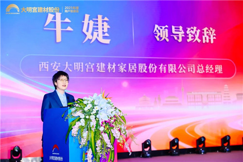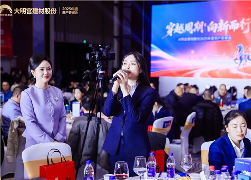 现场,公司总经理牛婕表示,2025年,大明宫建材股份紧密携手五千商户,共同正视周期变化,深入研判行业转型趋势,立足自身经营实际精准卡位,保持了稳健发展态势,近期公司更获得西安市委、市政府授予的“西安市民营经济高质量发展突出贡献企业”荣誉称号。展望2026年,公司将继续坚守“兴商旺商”初心,通过对接政策红利、加大兴市投入、深化“联动兴市”、提升服务素养、严守安保底线五大举措,为大家拓展更多资源,创造更多商机。