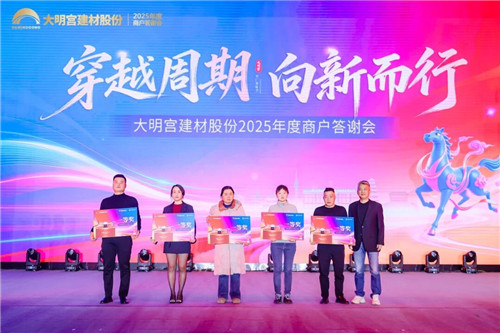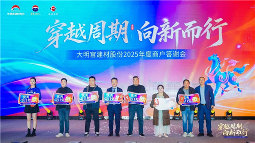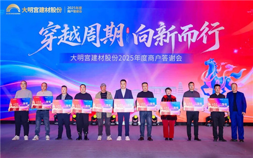 随后,公司领导班子开启“策马启新程”祝酒仪式,向各位商户伙伴的鼎力支持致以诚挚谢意。2026年,大明宫建材股份将与商户朋友们并肩携手、共迎调整,续写行业新辉煌!