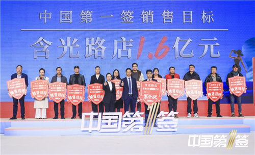 最后,西安市商务局一级调研员陆晴、西安市未央区大明宫街道党工委书记秦钊、陕西省室内装饰协会执行会长贺榆霞、陕西省家具协会会长、福乐集团董事长靳喜凤、陕西省家电商会执行会长、陕西省餐饮联合会驻会会长、智选电器董事长党小兵、西安南洋迪克整装智能家居有限公司总裁吴富相、陕西省建材商会执行会长、惠达卫浴西安运营中心董事长李敬涛、陕西佳驰美邑实业有限公司董事长李国派、西安青马生辉设计工程装饰有限公司总经理刘军、抖音生活服务大客户零售品牌组负责人洪智超、腾讯广告家装家居行业营销专家吴石凯、大明宫实业集团总裁任恋共同登台启动了2026年度“中国第一签”活动!
