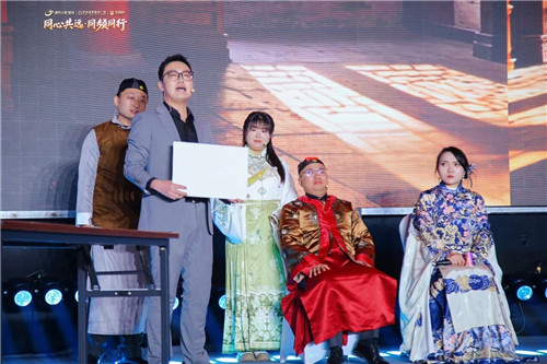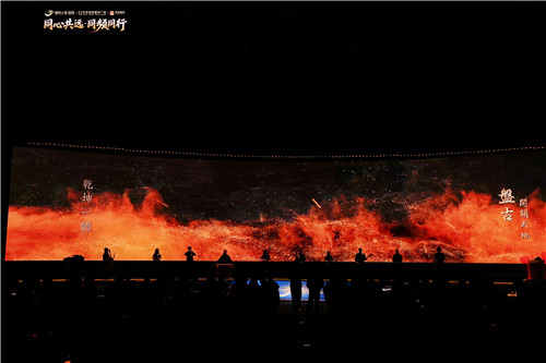 随着现场灯光渐暗,年会正式启幕。首先,开场视频缓缓播放,一幕幕中华文明五千年的发展史缓缓出现,从盘古开天辟壤启空间之始到鲁班精工铸传世之美,文明力量觉醒,融于人居肌理,刻入匠造血脉。