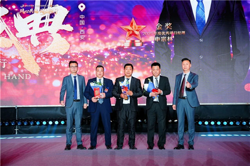 2025年度优秀项目经理铜奖谢瑞华(左二)、银奖张云丰(右二)、金奖申宗林(中间)
