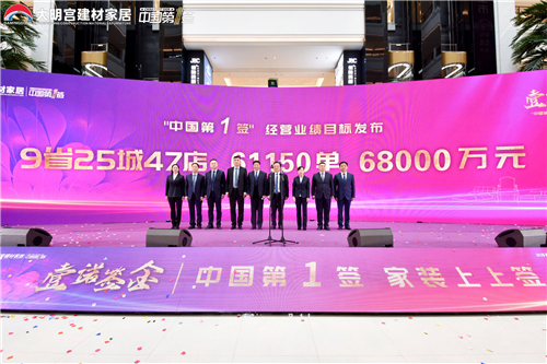 大明宫建材家居钻石店、东三环店、三桥店、含光路店、北二环店、高新西沣路店、榆林店、运营管理公司、商业管理公司共同登台揭晓了大明宫建材家居旗下9省25城47店2021年度“中国第一签”活动的总体销售目标为:6.8亿元。这个数字看似是一座难以逾越的高山,但也代表着全体大明宫人不断向上、攻坚克难的拼搏精神以及对活动必将取得胜利的坚定信心。