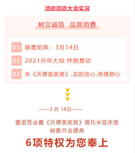 3.15之际也是家装市场的旺季,装修里的猫腻,装修中的各种“套路”让消费者不厌其烦。壹诺签金暨《沃德美家居》普托米亚床垫明星开业典礼,普托米亚是隶属于深圳华生大家居集团有限公司的寝具品牌,每一个设计细节,每一个生产工艺都牢牢掌控;每一个材质的选择,每一个解决的方案体现到产品之中,为顾客带来的更好的睡眠享受。本次活动更有香港著名影星吴启华亲临现场,让你怦然星动,嗨购不停!