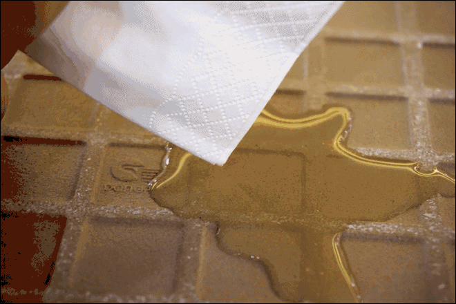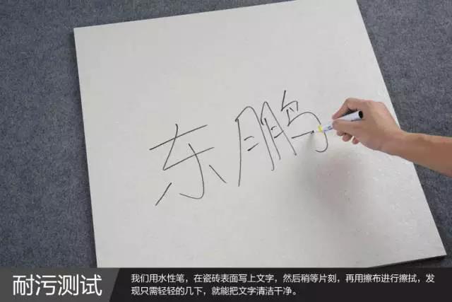 ▲瓷砖小贴士3:耐污性 耐污测试是非常重要的,尤其决定了厨房和卫浴间的铺贴质量。防污测试非常简单,待墨水干了,看是否容易清洗掉即可。