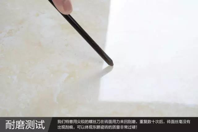 ▲瓷砖小贴士4:耐磨度 如今的瓷砖制作工艺,无论是抛光砖、微晶石、全抛釉、仿古砖之类的,都有一个质的飞跃,因此需要初步判断表面是否耐磨。